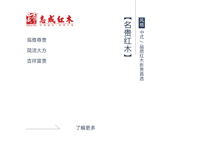 有擔當的身份品牌承載30年風雨歷程,志成紅木胸懷中國紅木夢,以發展自主品牌為己任,立足自主創新,打造中式家居四大品牌,構建起一條集研發、設計、生產、銷售于一體的完整產業鏈。